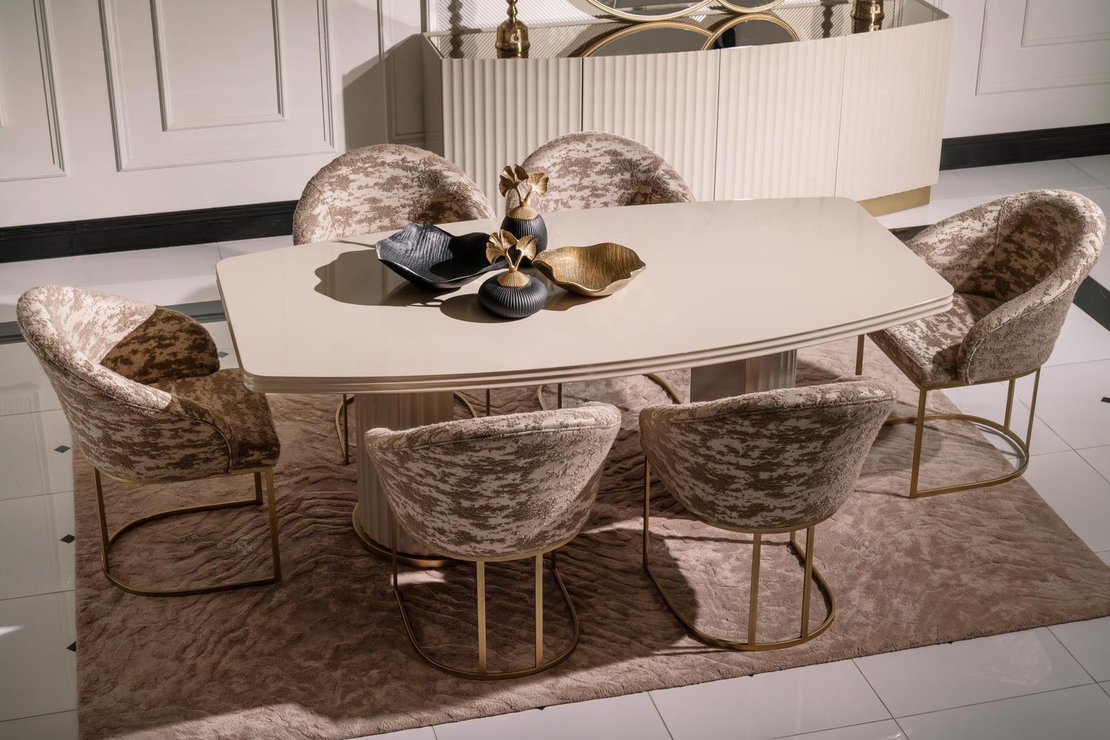 Essgruppe Essecke Esstisch Stühle Set 9tlg Esszimmer Beige Holz Luxus