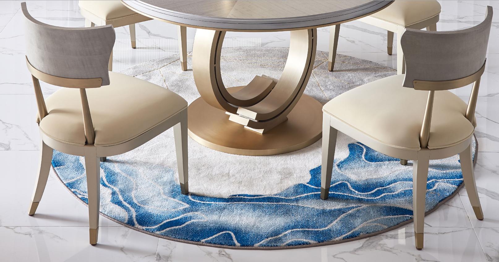 Entdecken Sie unser Design Rund Tisch 4x Stühle Ess Zimmer Sitz Runde Tische Garnitur aus Holz! Dieses stilvolle Esszimmer-Set besteht aus einem runden Esstisch und vier passenden Stühlen, die Ihrem Essbereich Eleganz verleihen. Die Möbel sind aus hochwertigem Holz, Edelstahl und Textil gefertigt und garantieren Langlebigkeit. Mit Maßen von ca. 135 x 79 x 135 cm für den Tisch und ca. 54 x 87 x 50 cm für die Stühle passen sie perfekt in Ihr Zuhause. Bestellen Sie jetzt und verwandeln Sie Ihr Esszimmer in einen stilvollen Raum!