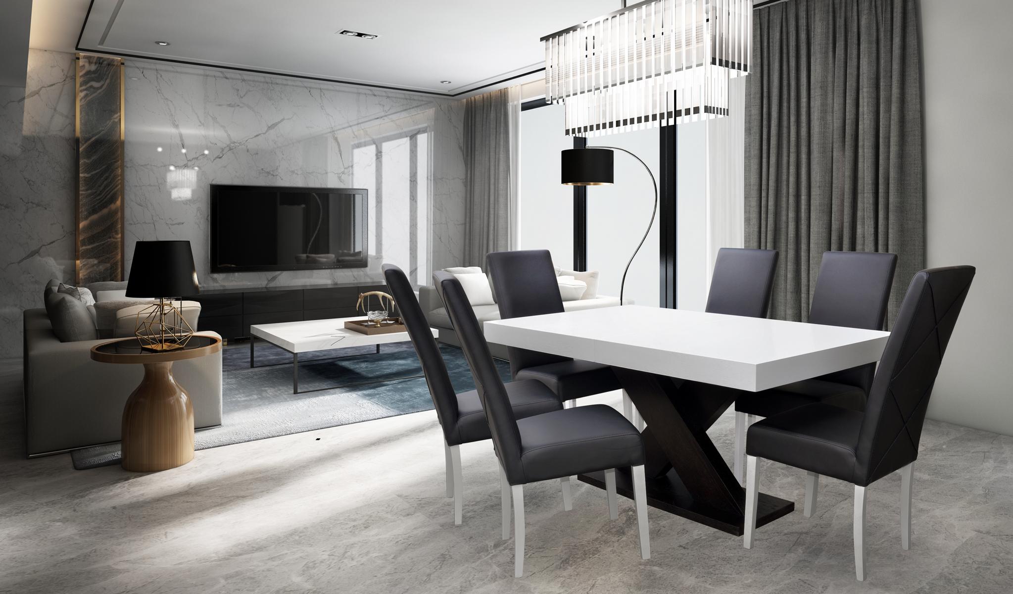 Entdecken Sie unser modernes Esszimmer-Set bestehend aus einer Vitrine, einem Esstisch, 6 Stühlen und einer Tischgruppe. Das 7-teilige Set ist die perfekte Ergänzung für Ihr Esszimmer und besticht durch sein zeitgemäßes Design. Der Esstisch in den Maßen ca. 90 x 160 cm, erweiterbar auf ca. 90 x 210 cm, bietet ausreichend Platz für gemütliche Mahlzeiten mit Familie und Freunden. Die 6 Stühle mit einer Höhe von ca. 105 cm und einer bequemen Sitzhöhe von ca. 50 cm sorgen für Komfort beim Sitzen. Die Stühle haben eine Sitzbreite von ca. 42 cm und eine Breite von ca. 45 cm. Das Set ist in der Farbe wie abgebildet erhältlich, aber auch andere Farbvarianten sind auf Anfrage möglich. Optional können Sie gegen einen Aufpreis von 50,00 CHF die Farbe (Holz oder Textil) ändern. Das Esszimmer-Set besticht durch seine hochwertige Verarbeitung mit einer Holz Tischplatte (funiert), die für Langlebigkeit und Stabilität sorgt. Machen Sie Ihr Esszimmer mit diesem modernen Set von XL Moebel zu einem Blickfang!
