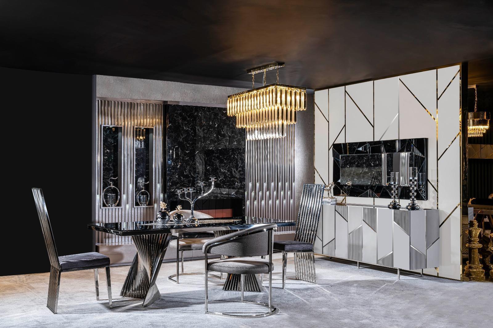 Esszimmer Set Esstisch 4x Stühle und Anrichte mit Spiegel Möbel Neu