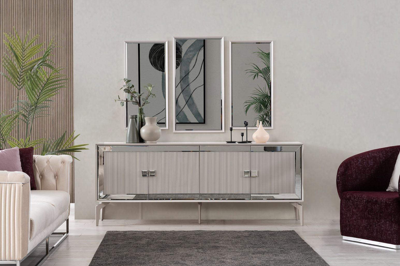 Entdecken Sie mit der Esszimmer Luxus Essgruppe Garnitur Esstisch Set 9tlg in Grau Holz eine elegante Ergänzung für Ihr Zuhause! Das Set besteht aus einem geräumigen Esstisch, bequemen Stühlen, einem stilvollen Sideboard und einem edlen Spiegel. Die Maße des Esstisches betragen ca. 180 x 92 x 78 cm, während die Stühle ca. 48 x 47 x 88 cm groß sind. Das Sideboard misst ca. 202 x 45 x 75 cm und der Spiegel ca. 44 x 2 x 89 cm. Das Set besticht nicht nur durch seine zeitlose Farbe und das moderne Design, sondern auch durch die hochwertige Verarbeitung aus Holz und Stoff. Nutzen Sie die Gelegenheit, um Ihr Esszimmer mit diesem exklusiven Ensemble zu verschönern! Sichern Sie sich jetzt die Esszimmer Luxus Essgruppe Garnitur Esstisch Set 9tlg in Grau Holz und verleihen Sie Ihrem Essbereich einen Hauch von Luxus!