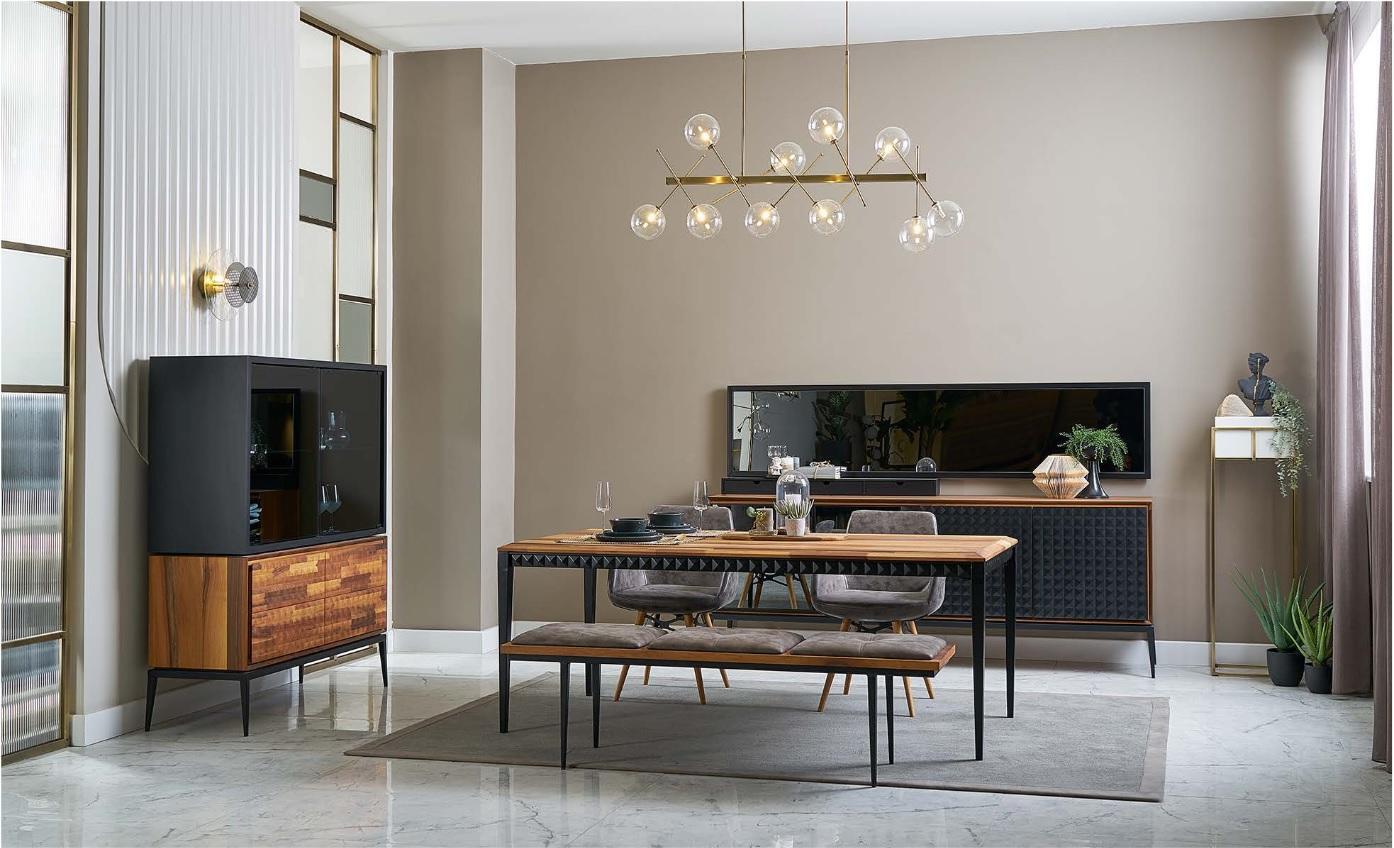 Erhellen Sie Ihr Esszimmer mit dieser eleganten Esszimmergruppe! Unser Esszimmertisch Esszimmer Set in Braun besteht aus einem Esstisch, Stühlen, einer Bank, einem Sideboard, einem Spiegel und einer Vitrine. Hergestellt aus hochwertigem Holz und Stoff, besticht dieses Set nicht nur durch sein modernes Design, sondern auch durch seine hochwertige Verarbeitung. Mit Maßen wie ca. 195x95x74 cm für den Esstisch, ca. 43x41x90 cm für die Stühle und ca. 150x41x50 cm für die Bank bietet dieses Set ausreichend Platz für Sie und Ihre Gäste. Das Sideboard (ca. 226x47x86 cm), der Spiegel (ca. 225x5x50 cm) und die Vitrine (ca. 125x47x153 cm) runden das Ensemble perfekt ab. Erhältlich wie abgebildet (andere Farben auf Anfrage), fügt sich dieses Esszimmermöbel-Set nahtlos in jedes Dekor ein. Holen Sie sich jetzt diese Essgruppe von XL Möbel und verleihen Sie Ihrem Essbereich einen Hauch von Klasse und Stil!