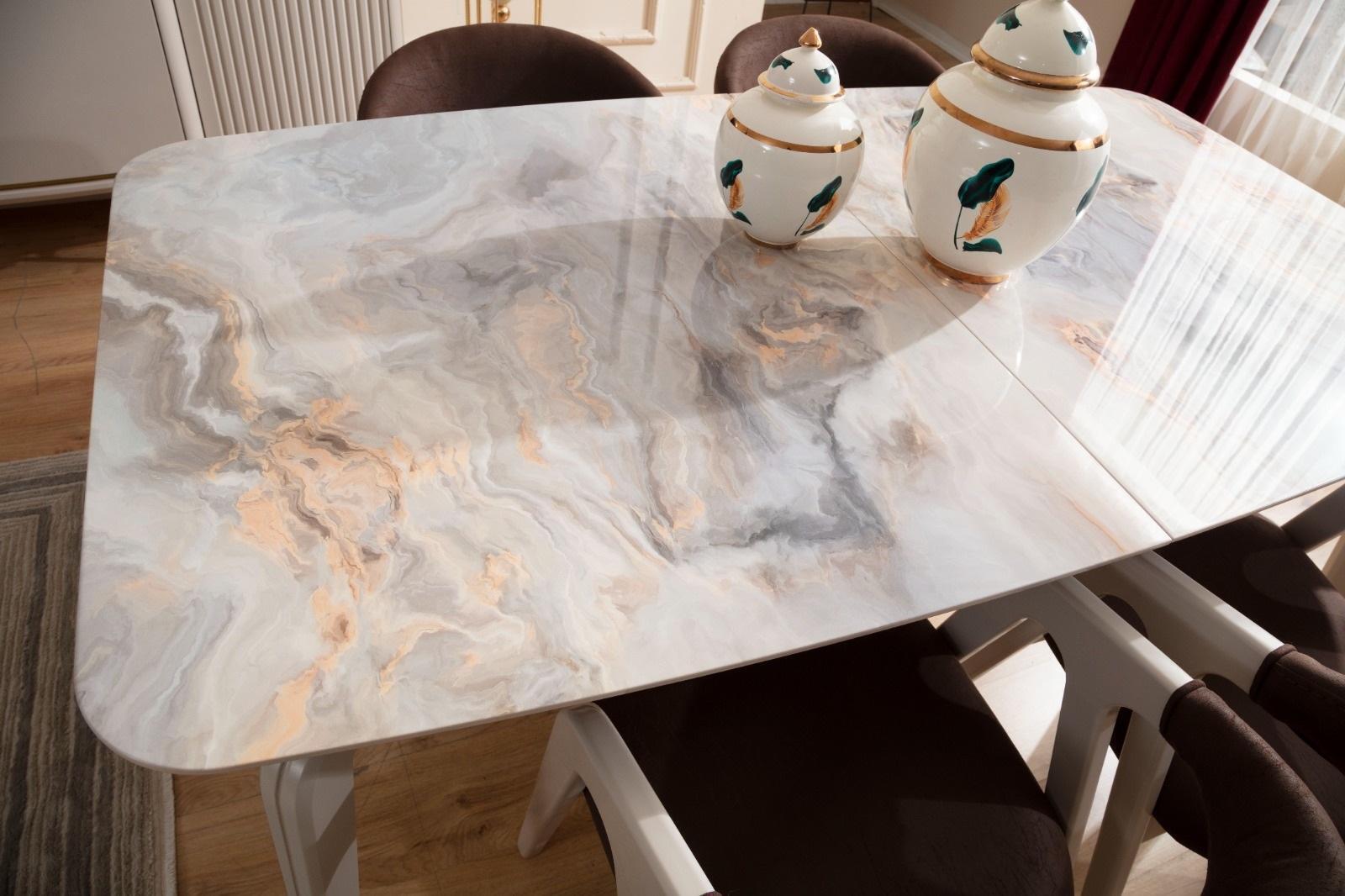 Holzmöbel Designer Esszimmergarnitur Beiger Esstisch 4X Stühle Anrichte