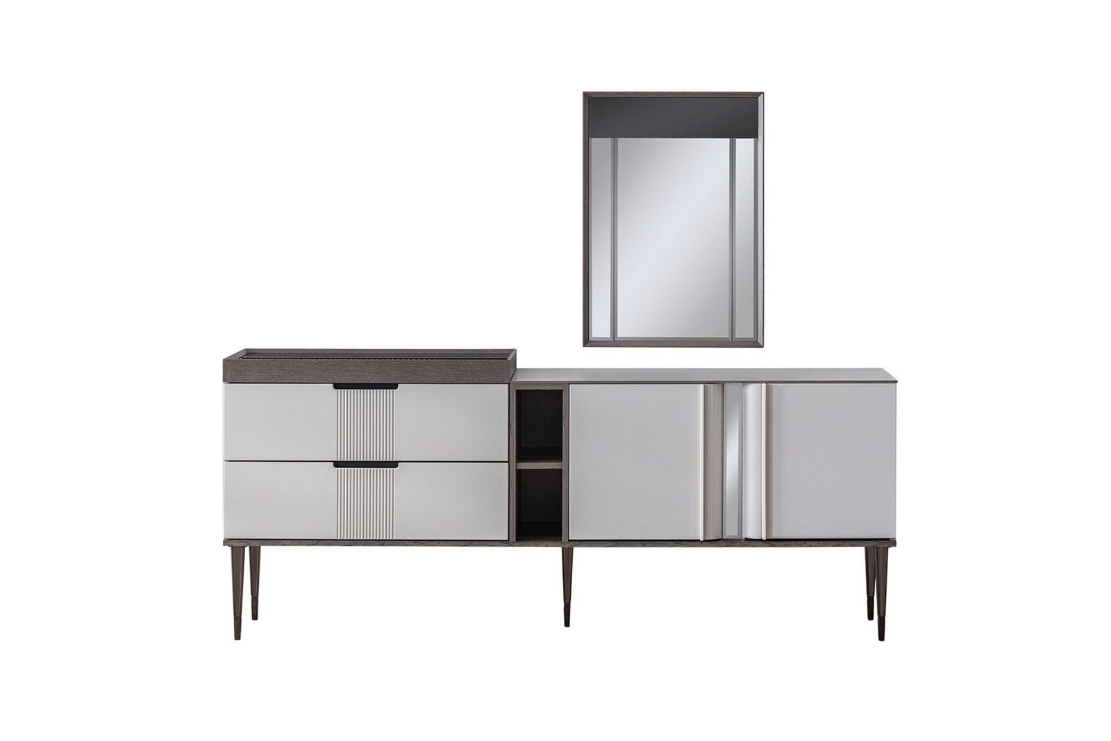 Entdecken Sie unser Luxus Esszimmer Set, bestehend aus einem Esstisch, 4 Stühlen, einer Anrichte und einem Spiegel! Das Set besticht durch seine eleganten Maße und das hochwertige Material aus Holz, Textil und Glas. Der Esstisch misst ca. 200 x 96 x 75 cm und die Stühle ca. 45 x 42 x 79 cm. Die Anrichte ist ca. 206 x 42 x 88 cm groß, während der Spiegel ca. 58 x 7 x 82 cm misst. Dieses Set wird in der Farbe geliefert, wie abgebildet. Gönnen Sie sich das gewisse Extra für Ihr Esszimmer und genießen Sie Luxus und Stil in einem!