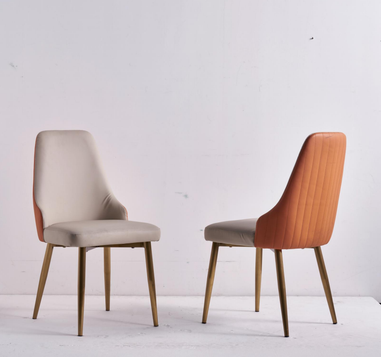Orange-Beiger Esszimmerstühle Luxus Lederstühle Küchenstuhl Holz Möbel