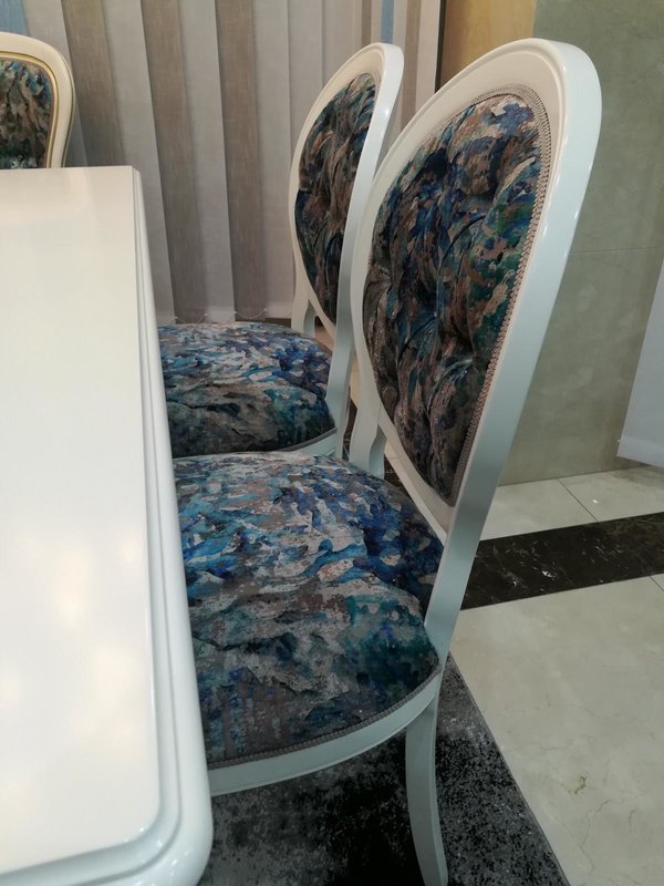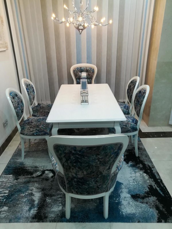 Verleihen Sie Ihrem Esszimmer mit unseren stilvollen klassischen grau-blauen Esszimmerstühlen im praktischen 4er Set eine elegante Note! Hergestellt aus echtem Holz und Textil bieten diese Stühle nicht nur eine hochwertige Optik, sondern auch eine angenehme Sitzgelegenheit. Die Maße der Stühle betragen ca. 50 cm in der Länge, ca. 98/46 cm in der Höhe und ca. 44 cm in der Tiefe. Mit der freien Farbwahl können Sie die Stühle ganz nach Ihrem Geschmack gestalten. Falls Sie andere Farben bevorzugen, können Sie gerne eine Anfrage stellen. Diese Stühle passen perfekt zu verschiedenen Esstischmodellen aus unserem Sortiment, sei es rechteckig, quadratisch, oval oder elliptisch. Werten Sie Ihr Esszimmer stilvoll auf und genießen Sie gemütliche Mahlzeiten in einem ansprechenden Ambiente. Bestellen Sie jetzt Ihre neuen Esszimmerstühle!