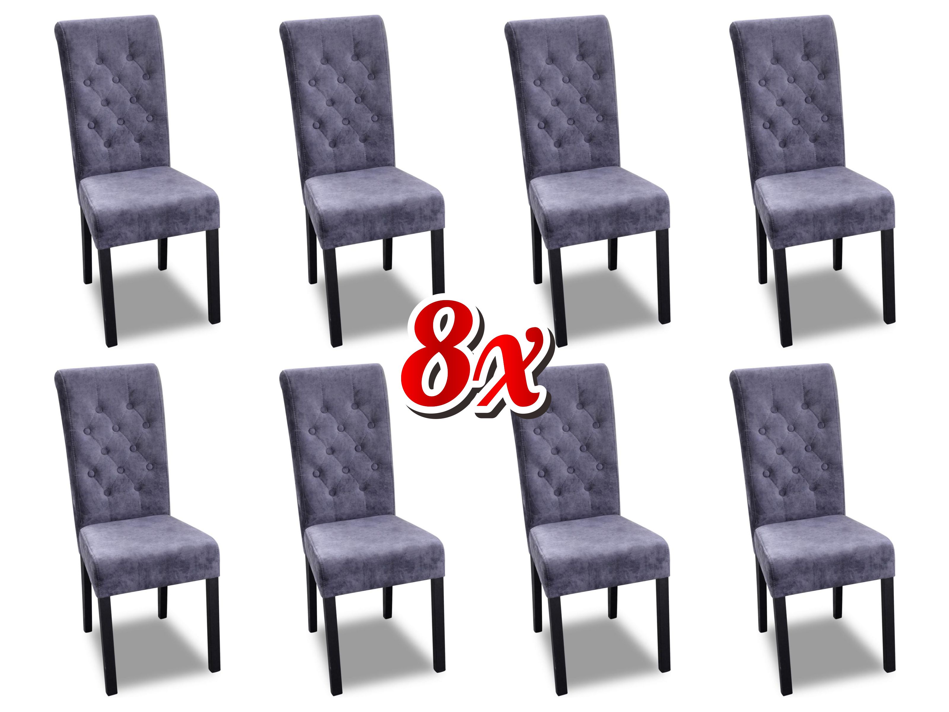 Entdecken Sie den Luxus und das einzigartige Design der Chesterfield x8 Stühle! Diese Designer-Polsterstühle bringen Eleganz in Ihr Zuhause. Hergestellt aus hochwertigem Holz mit einer funierten Tischplatte, bieten sie Komfort und Stil zugleich. Mit Maßen von ca. 101 cm Höhe, 48 cm Sitzhöhe, 41 cm Sitzbreite, 48 cm Länge und 44 cm Breite sind diese Stühle perfekt für jeden Raum geeignet. Die Mehrfaltigkeit der Farbauswahl ist beeindruckend: Weiß, Schwarz, Rot, Blau, Gelb, Grün, Lila, Orange, Rosa, Braun, Grau, Türkis und viele mehr! Außerdem können Sie zwischen verschiedenen Materialien wie Samt, Velours, Polyester, Kunstleder oder Leder wählen. Holen Sie sich diese exklusiven Stühle und verwandeln Sie Ihr Zuhause in eine stilvolle Oase. Bestellen Sie jetzt und genießen Sie Luxus und Komfort auf höchstem Niveau!
