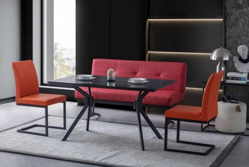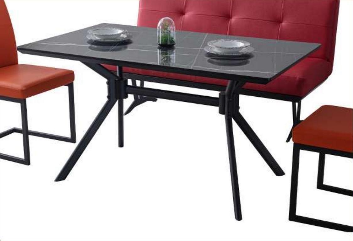 Moderne Esszimmer Möbel Schwarzer Esstisch Kunstleder Stühle Luxus Bank