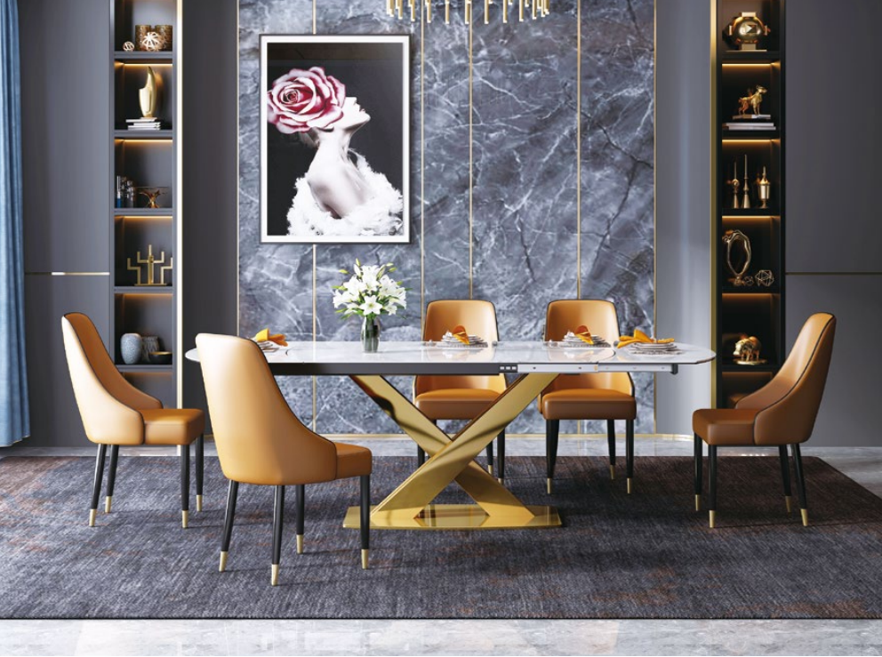 Entdecken Sie die Multifunktionsstilmöbel Esszimmergruppe Sitz Polster Tisch Garnitur von XL Moebel! Mit diesem stilvollen Set erhalten Sie einen Esstisch, der von 120 auf 180 cm erweitert werden kann, sowie vier bequeme Stühle. Hergestellt aus hochwertigem Holz, Edelstahl und Kunstleder in der abgebildeten Farbe, wird dieses Möbelset Ihr Esszimmer aufwerten. Die Maße des Esstisches betragen ca. 120 x 76 x 88 cm bzw. erweitert 180 x 76 x 88 cm, während die Stühle ca. 55 x 90 x 62 cm groß sind. Verleihen Sie Ihrem Esszimmer mit diesem Set eine moderne Note!