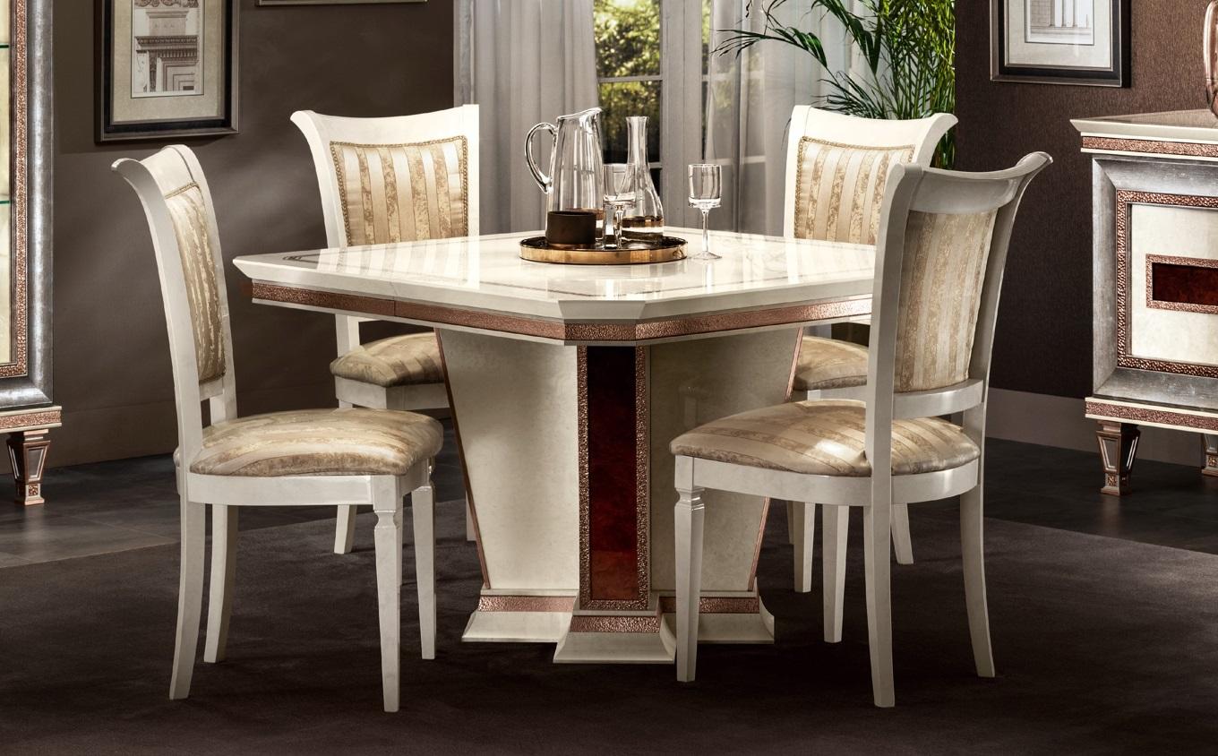 Verschönern Sie Ihr Esszimmer mit diesem eleganten Komplettset von Arredoclassic! Das 5-teilige Esszimmer-Set besteht aus einem stilvollen Esstisch und 4 passenden Stühlen. Der Esstisch, aus hochwertigem Holz gefertigt, hat Maße von ca. 120 x 120 x 77 cm und kann auf 160 cm erweitert werden. Die 4 Stühle, ebenfalls aus Holz, bieten mit ihren Maßen von ca. 54 x 61 x 102 cm einen bequemen Sitzplatz. Die klassische Farbe passt perfekt in jedes Esszimmer und verleiht Ihrem Raum einen Hauch von Eleganz. Bestellen Sie noch heute dieses Esszimmer-Set und machen Sie Ihre Mahlzeiten zu einem besonderen Erlebnis!