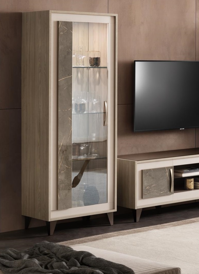 Entdecken Sie die Schönheit des Vitrine Glasschrank Regal Bücherschrank Wohnwand Schrank Möbel Regale für das Wohnzimmer! Hergestellt von dem renommierten italienischen Hersteller Arredoclassic aus hochwertigem Holz, besticht dieser Schrank durch Eleganz und handwerkliche Raffinesse. Die Maße von ca. 75 * 50 * 210cm bieten ausreichend Stauraum und die zeitlose Farbe fügt sich perfekt in jedes Wohnzimmer ein. Holen Sie sich mit diesem Möbelstück ein Stück italienische Eleganz nach Hause!