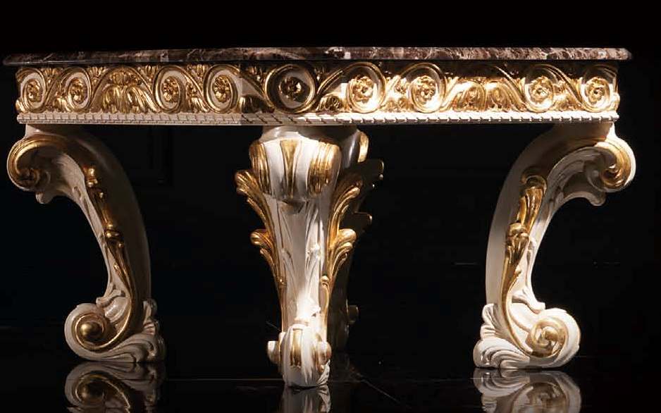 Entdecke den Couchtisch mit Marmor von Boiserie Italia! Dieser antike Beistelltisch im Barock-Rokoko-Stil verleiht deinem Zuhause einen Hauch von italienischem Luxus. Der runde Tisch besticht durch sein elegantes Design und die hochwertige Verarbeitung aus Holz. Mit Maßen von ca. 86 x 86 x 54 cm bietet er genügend Platz für deine Wohnzimmeraccessoires. Hol dir jetzt ein Stück italienische Eleganz nach Hause!