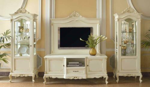Klassische Wohn Wand Wohnzimmer Vitrine Sideboard RTV Regal Wände Schrank 3tlg. Massivholz