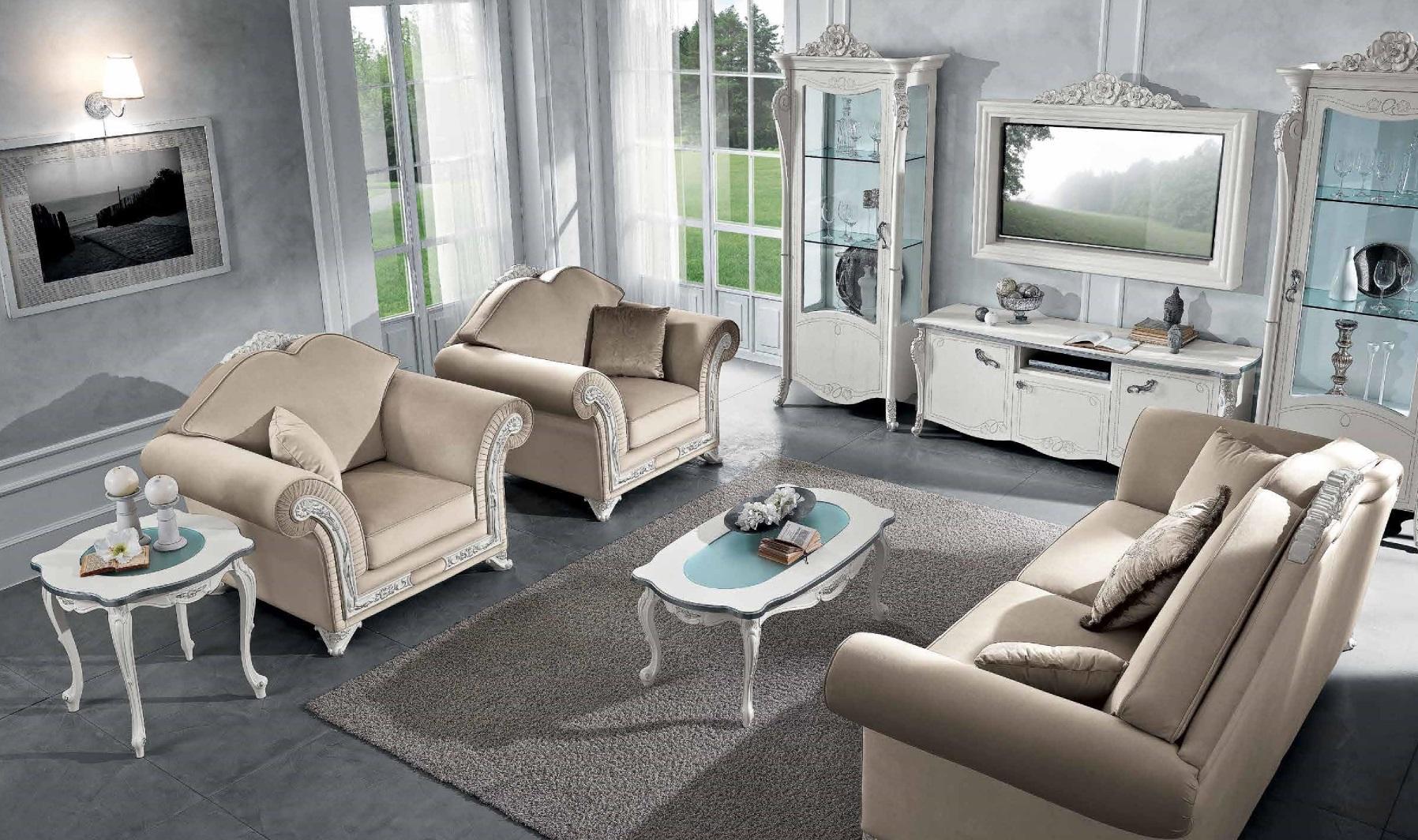 Entdecken Sie das klassische 9-teilige Wohnzimmerset in den wunderschönen Farben Beige und Weiß von Mobilpiu Luxury! Hergestellt in Italien, erfüllt dieses Wohnzimmerset höchste Standards in Qualität und Stil. Das Set beinhaltet ein 3-Sitzer-Sofa, zwei bequeme Sessel, einen eleganten Couchtisch, zwei stilvolle Vitrinen, einen TV-Schrank, einen TV-Rahmen und einen Beistelltisch - alles aus hochwertigem Holz gefertigt. Lassen Sie sich von der Raffinesse und Funktionalität dieser exquisiten Wohnzimmereinrichtung begeistern! Werten Sie Ihr Zuhause mit diesem luxuriösen Set auf und genießen Sie Komfort und Eleganz in jedem Detail.