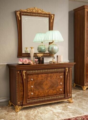 Kommoden Set Italienische Möbel 2tlg. Massivholz Kommode mit Spiegel Sideboard