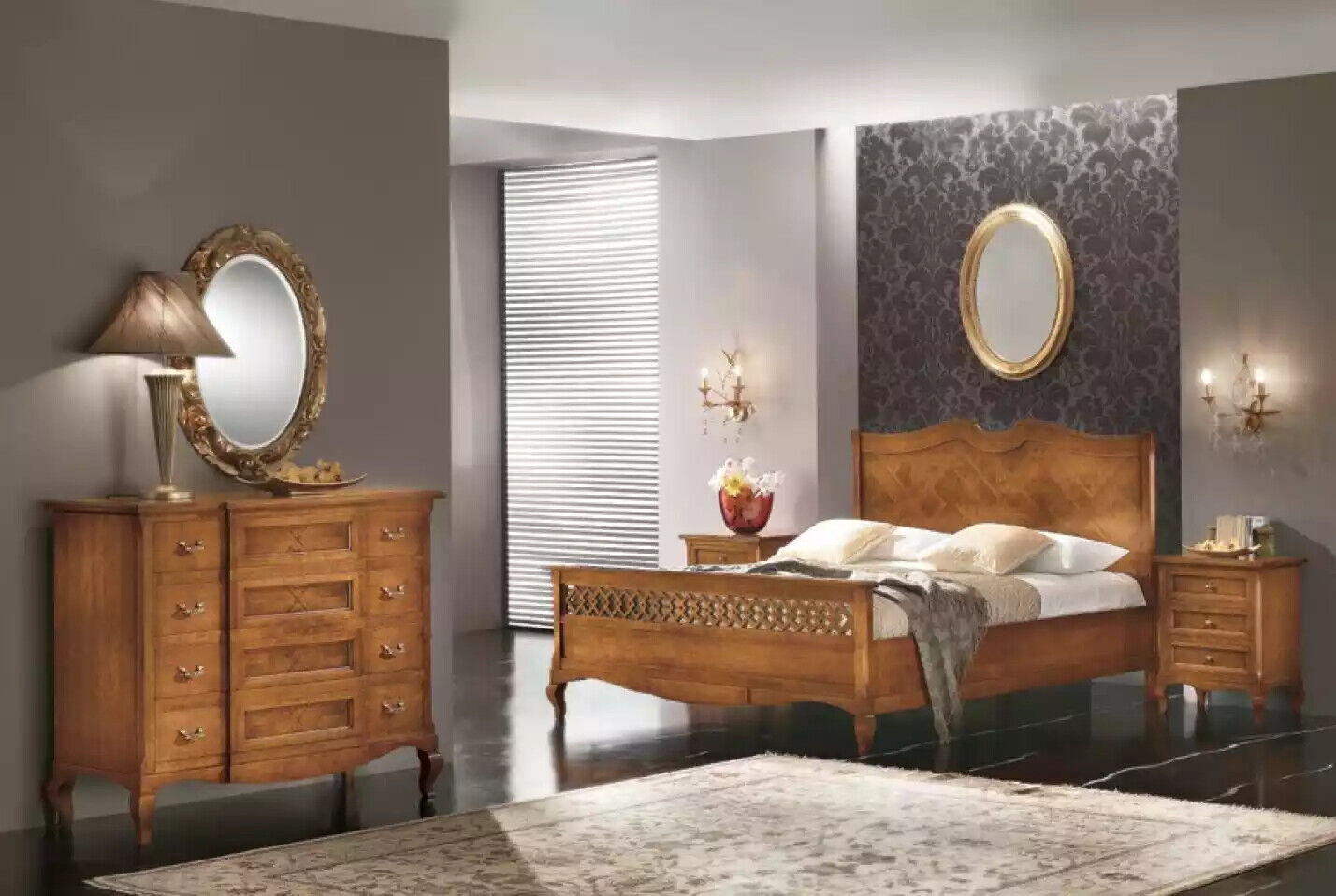 Schlafzimmer Kommode mit Spiegel Luxus Modern Möbel Set 2tlg Holz Neu