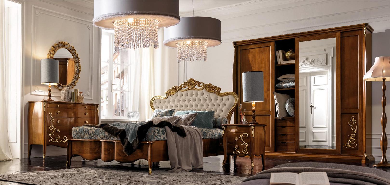 Schlafgarnitur, klassische Möbel, luxuriöses Bett
