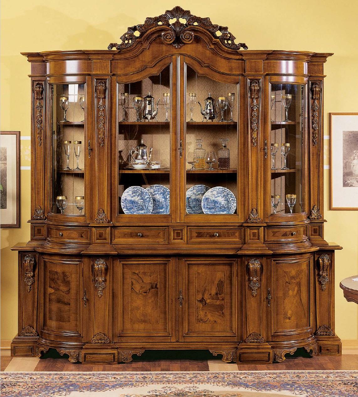 Vitrinen Massive Holz Glas Schrank Echtholz Vitrine Wohnzimmer Möbel Anrichte