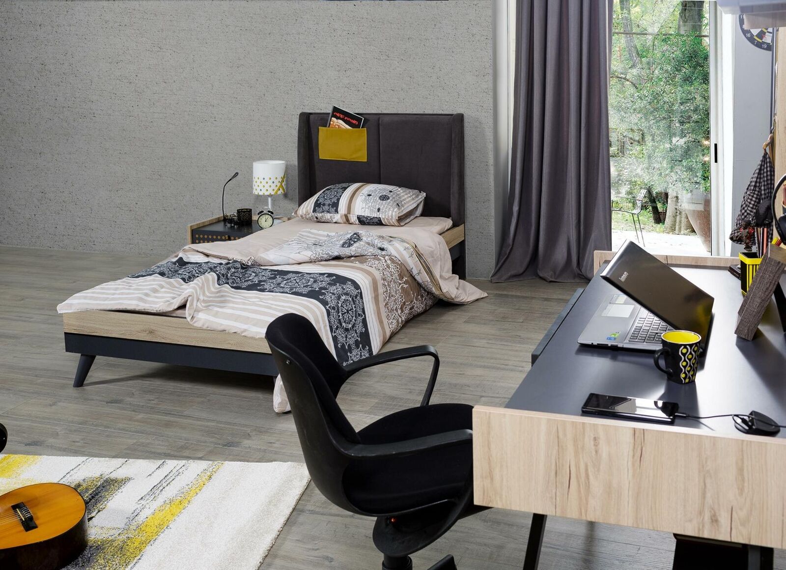 Bett Holz Betten Bettgestell Jugendzimmer Kinderzimmer Schwarz Einzelbett