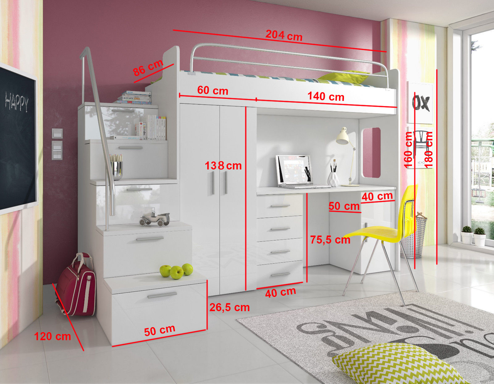 Doppelstockbett Etagenbett Doppelbett Jugend Bett Betten mit Schrank Tisch Neu