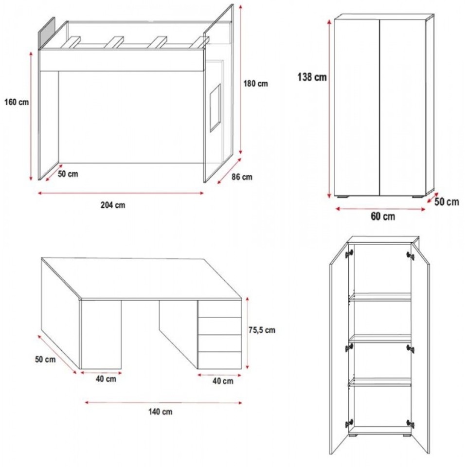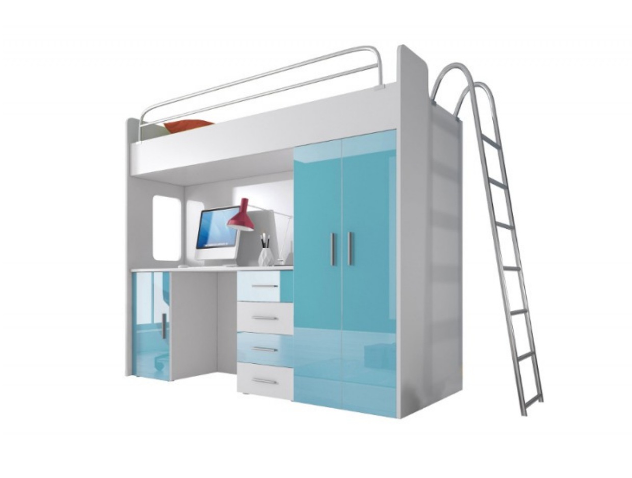 Blau Doppelstockbett Holz Etagen Bett Mädchen Hochglanz mit Schreibtisch Schrank