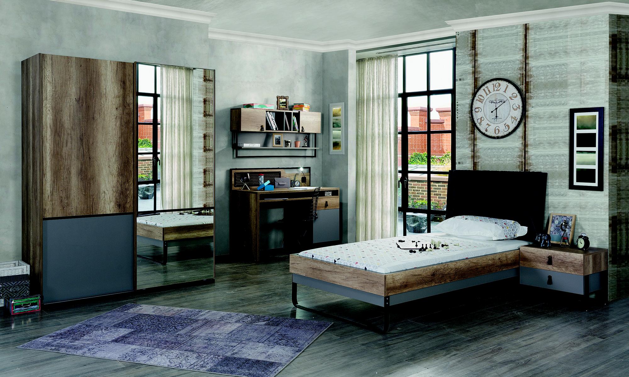 Designer Jugendzimmer Schlafzimmer Bett Nachttisch Schreibtisch 3tlg.
