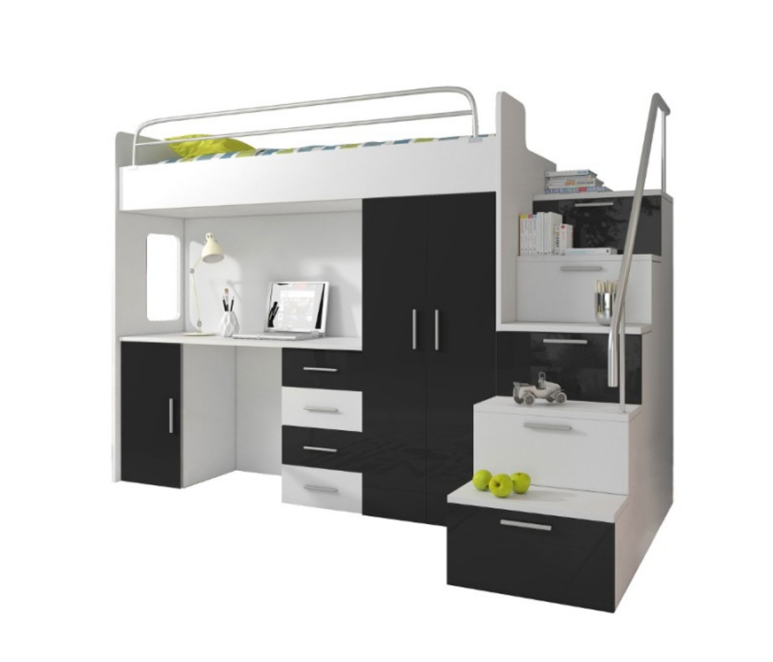 Doppelstockbett Schwarz Tisch Schrank Multifunktion Etagen Hochbett Kinderzimmer