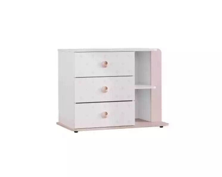 Garnitur Kommode mit Spiegel Weiß Holz Rosa Schrank Holzschrank Modern