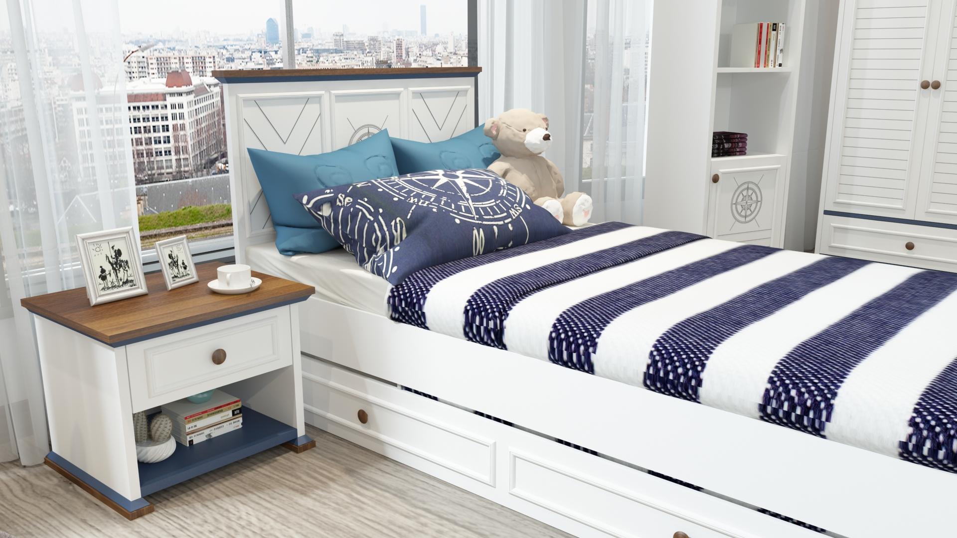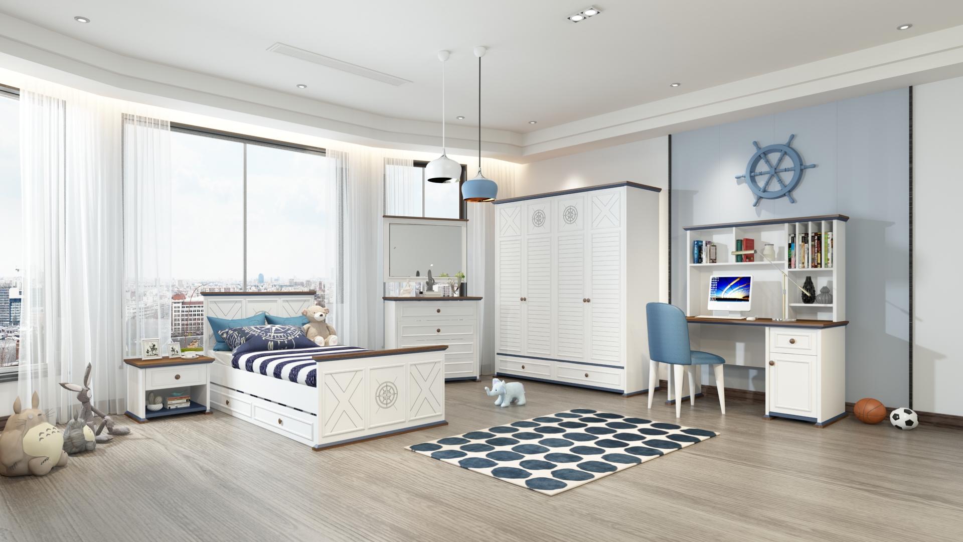 Schlafzimmermöbel-Set Bett mit Nachttisch, Kleiderschrank und Schreibtisch