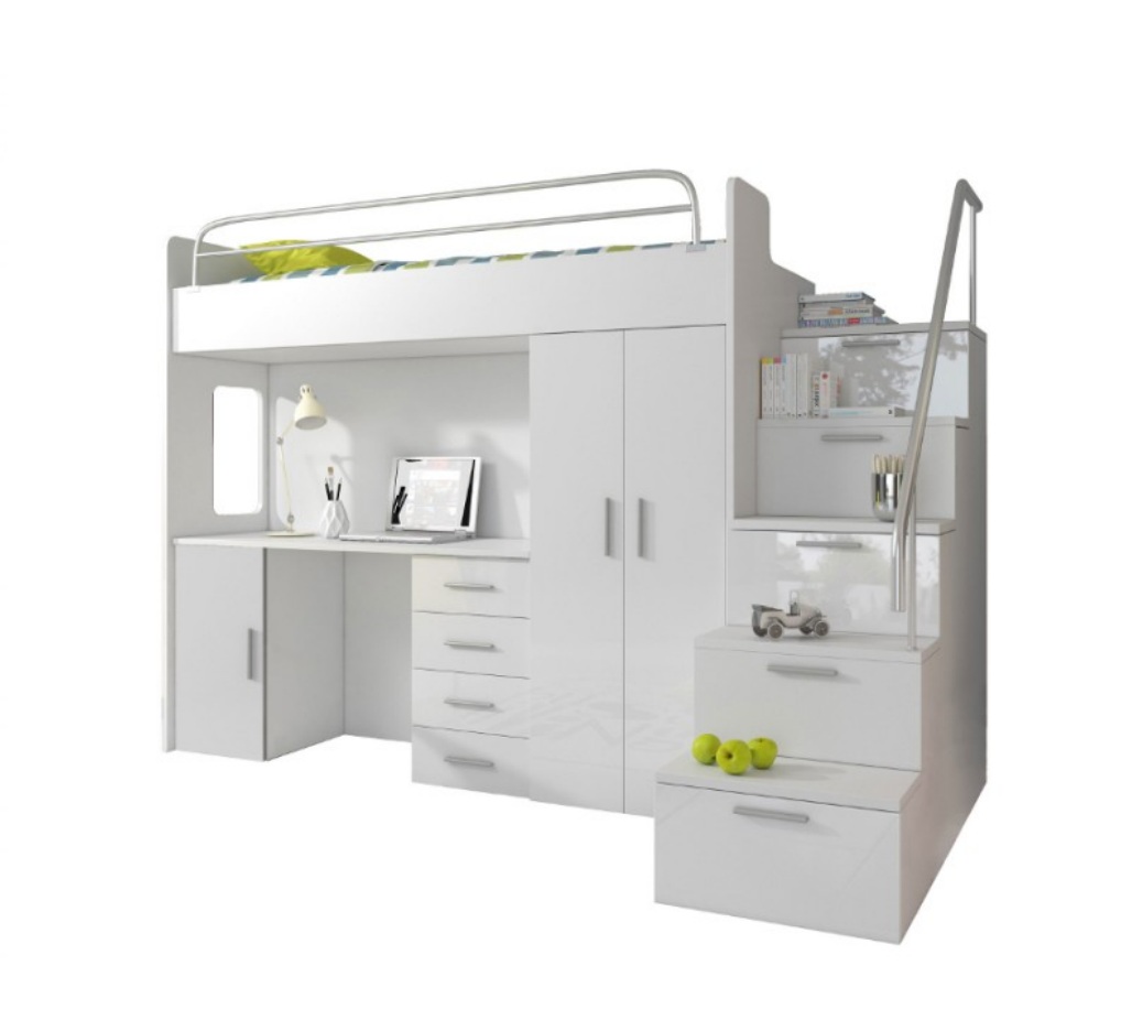 Kinderzimmer Doppelstockbett Weiß Tisch Schrank Multifunktion Etagen Hochbett