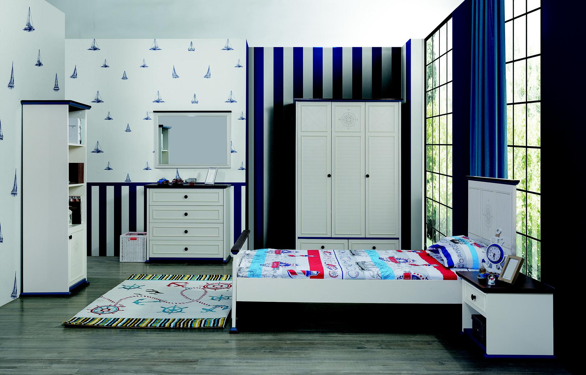 Kinderzimmer Komplett Set Bett Nachttisch Kleiderschrank Kommode Spiegel 6tlg