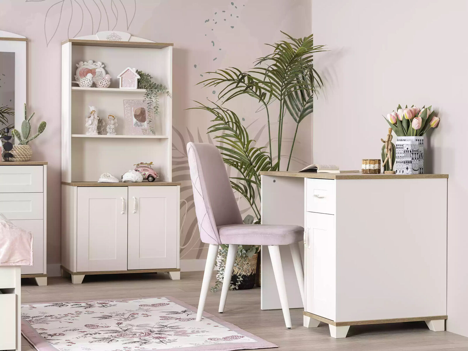 Entdecken Sie das Komplette Jugendbett Kindermöbel Kinderzimmer Bett Set in Rosa von XL Moebel! Dieses umfangreiche 8-teilige Set beinhaltet ein Bett, einen Nachttisch, einen Kleiderschrank, eine Kommode, einen Spiegel, einen Schreibtisch und zwei Bücherregale aus Holz. Perfekt für das Kinderzimmer, besticht dieses Set durch seine Maße und das ansprechende Design in Rosa. Das Bett bietet eine Matratzenaufliegefläche von ca. 120 cm x 200 cm und hat eine Gesamtgröße von ca. 126 cm x 208 cm x 118 cm. Der Kleiderschrank misst ca. 136 cm x 60 cm x 202 cm und die Kommode ca. 84 cm x 47 cm x 78 cm. Mit diesem Set schaffen Sie eine gemütliche und hübsche Umgebung für Ihre Kinder. Holen Sie sich jetzt das Komplette Jugendbett Kindermöbel Kinderzimmer Bett Set und verwandeln Sie das Kinderzimmer in einen stilvollen Rückzugsort!