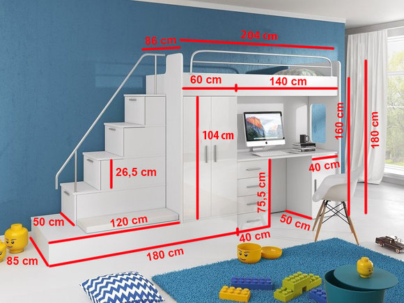 Entdecken Sie das Jugendzimmer Bett Doppelstockbett Etagenbett Schreibtisch Kleiderschrank RAJ 5S von XL Moebel! Dieses praktische Set bietet alles, was man für ein modernes Jugendzimmer braucht. Mit dem Etagenbett sparen Sie Platz und schaffen eine gemütliche Schlafumgebung. Der Schreibtisch ist ideal zum Lernen und Arbeiten und der geräumige Kleiderschrank sorgt für Ordnung im Zimmer. Hergestellt aus Holz und in der trendigen Farbe wie abgebildet, ist dieses Set eine stilvolle Ergänzung für jedes Jugendzimmer. Matratzen sind separat erhältlich. Machen Sie das Jugendzimmer Ihrer Träume wahr!