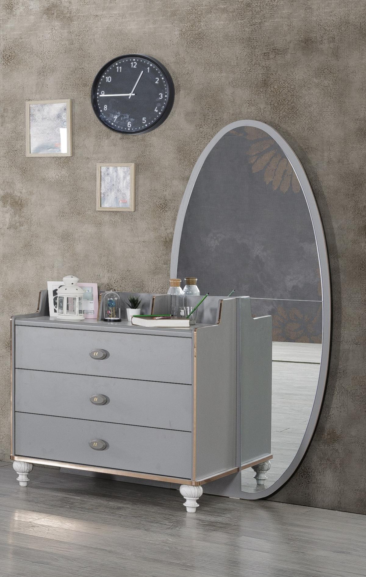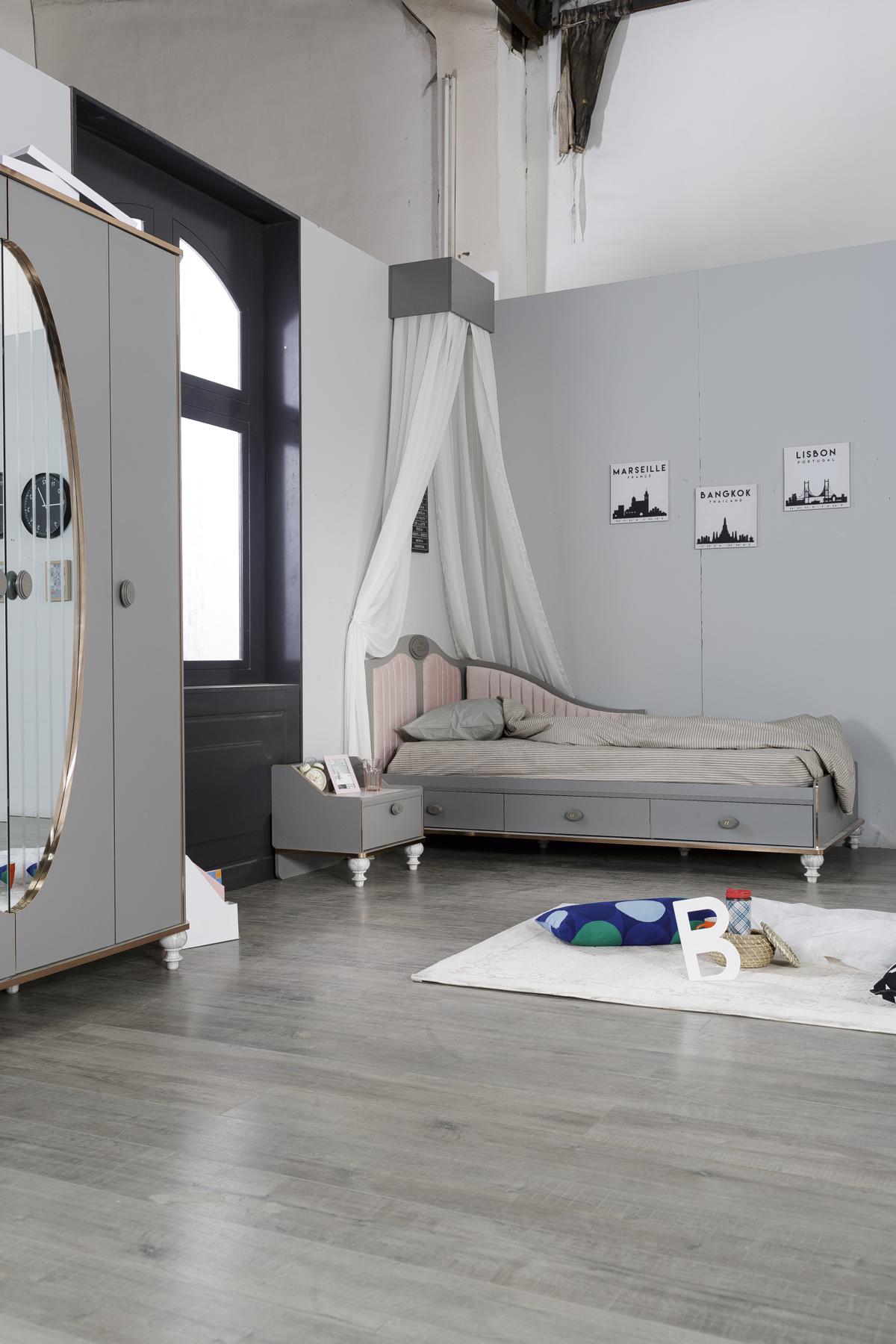 Entdecken Sie unser stilvolles 4-teiliges Kinderzimmer Design Set bestehend aus Bett, Nachttisch, Kommode und Kleiderschrank! Hergestellt aus hochwertigem Holz in den Maßen Bett ca. 114 x 209 x 104 cm, Nachttisch ca. 56 x 44 x 48 cm, Kleiderschrank ca. 170 x 61 x 212 cm und Kommode mit Spiegel ca. 122 x 49 x 167 cm. Das Set ist in der Farbe wie abgebildet erhältlich und wird jedem Kinderzimmer eine elegante Note verleihen. Holen Sie sich jetzt dieses traumhafte Design Set für Ihr Zuhause!