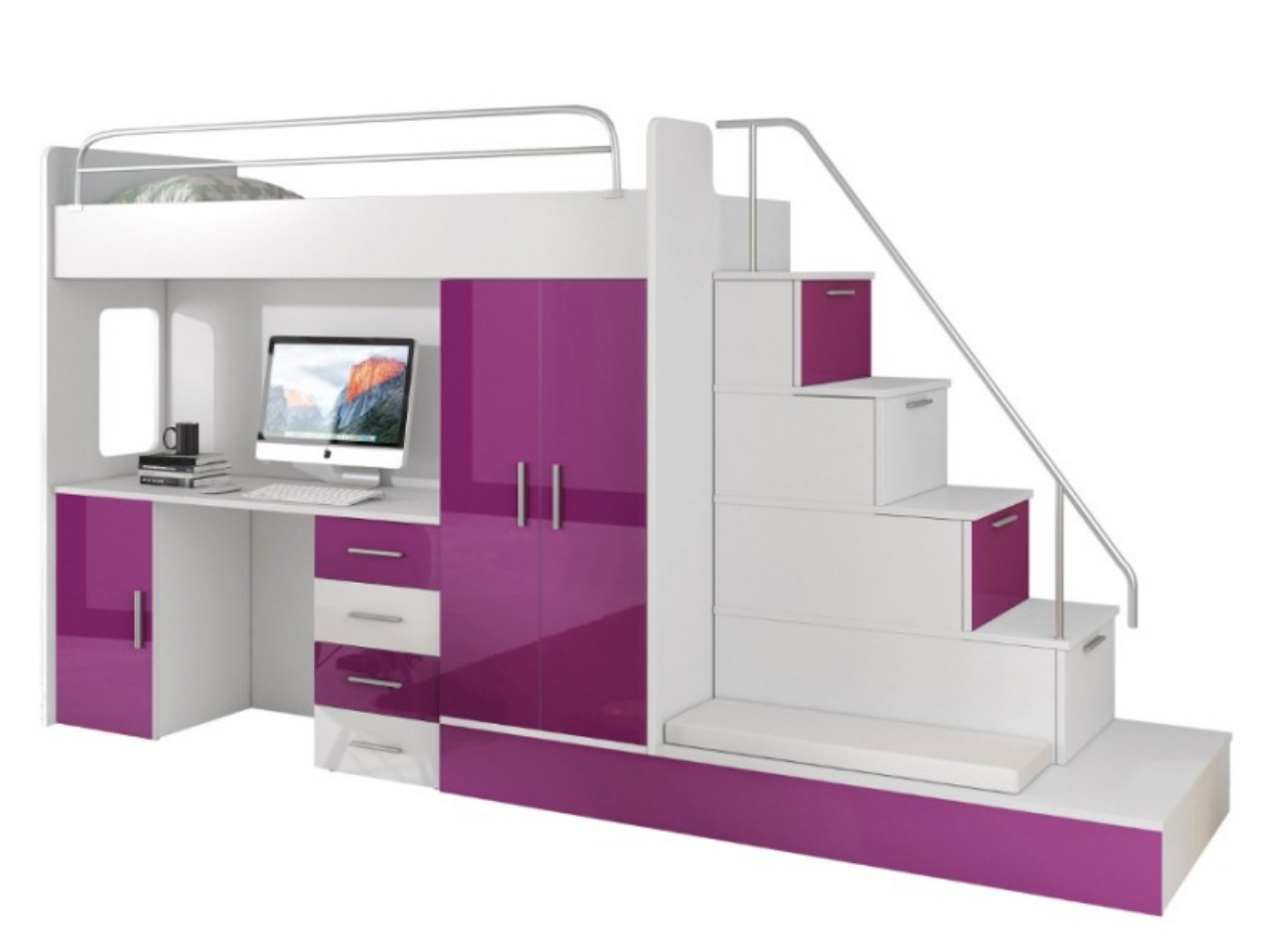 Lila Kinder Hochbett Etagenbett Doppelstockbett Bett Hochglanz Möbel