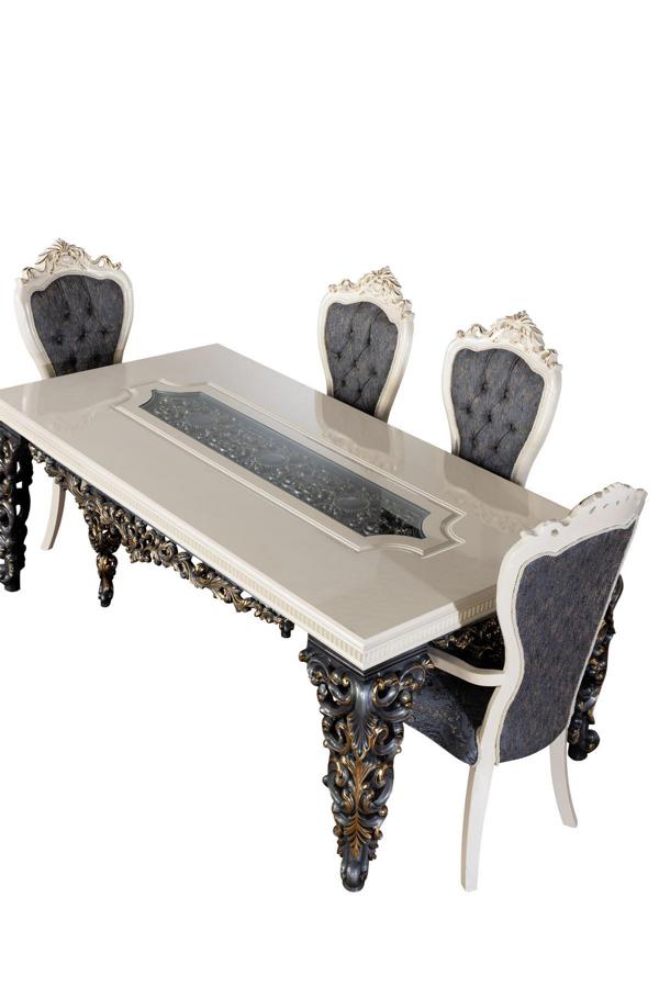 Erfrischen Sie Ihr Esszimmer mit dieser exquisiten Essgruppe! Unser Esstisch Essgruppe Klassischer Tisch Esszimmer Set 7tlg Set Stuhl 6x Stühle neu ist der perfekte Begleiter für gemütliche Mahlzeiten mit Familie und Freunden. Der Esstisch misst ca. 210 x 104 x 83 cm und die 6 Stühle ohne Armlehnen sind ca. 55 x 55 x 120 cm groß. Hergestellt aus hochwertigem Holz, verleiht diese Essgruppe Ihrem Esszimmer einen Hauch von Eleganz und Wärme. Die Farbe entspricht dem abgebildeten Modell, aber auf Anfrage sind auch andere Farben erhältlich. Wir bieten eine große Auswahl an Farben und Materialien an, darunter Samt, Velours, Kunstleder und mehr. Verpassen Sie nicht die Gelegenheit, Ihren Essbereich stilvoll zu gestalten! Bestellen Sie jetzt Ihre Essgruppe und genießen Sie köstliche Mahlzeiten in einer ansprechenden Umgebung.