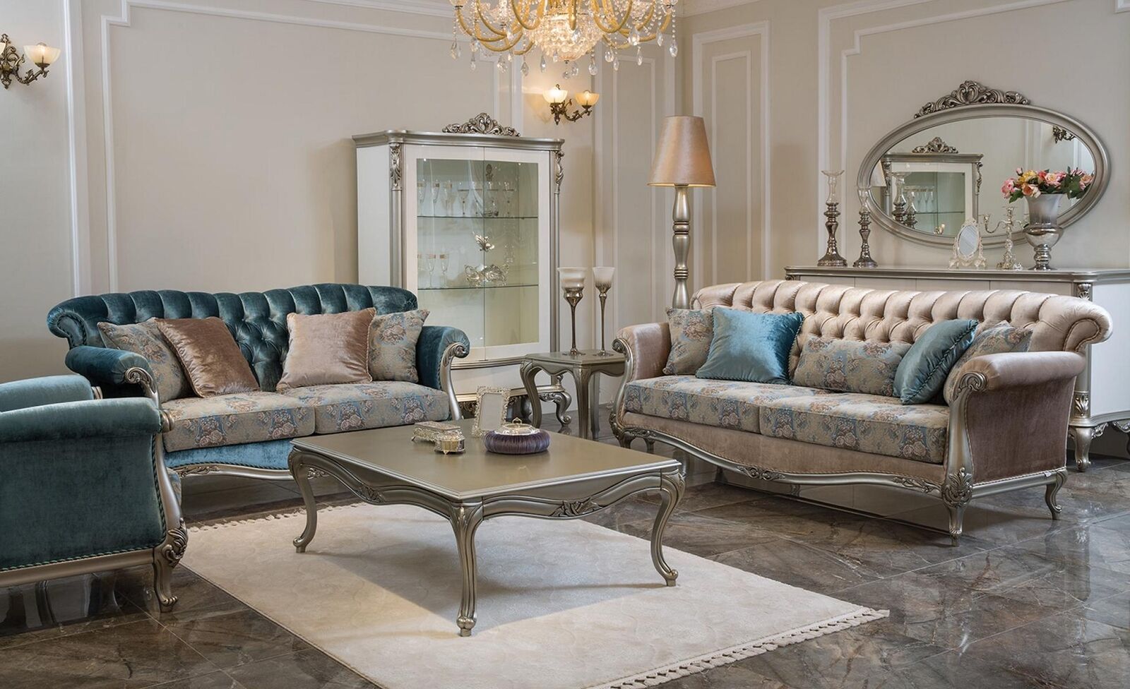 Klassische Silber Vitrine Französische Stil Möbel Anrichte Glasschrank