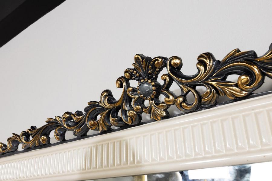 Bringen Sie mit Stil und Eleganz eine königliche Note in Ihr Zuhause mit dieser edlen Kommode und dem dazugehörigen Spiegel im Barock Rokoko Design. Hergestellt aus hochwertigem Holz und Glas, misst dieser Kommoden Schrank ca. 210 x 55 x 100 cm (Länge x Breite x Höhe) und verleiht jedem Raum einen Hauch von Luxus. Die klassische Farbgebung und geschwungenen Formen machen dieses Möbelstück zu einem wahren Schmuckstück. Holen Sie sich dieses atemberaubende Ensemble noch heute und tauchen Sie ein in die Welt des XL Möbel- Sortiments!