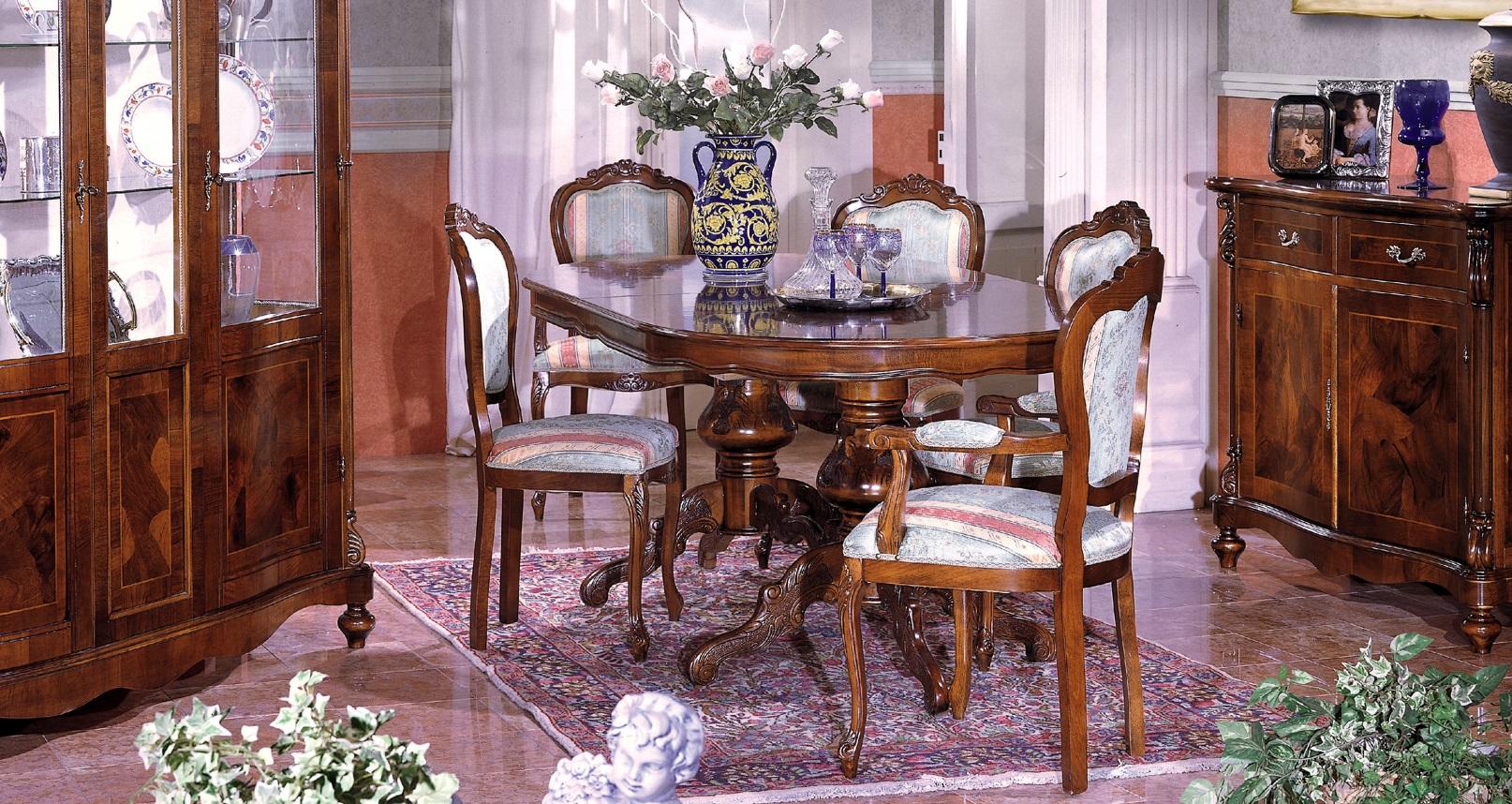 Bringen Sie mit dieser eleganten 6-teiligen Esszimmer Möbelgruppe von XL Möbel Luxus in Ihr Zuhause! Die klassische Esszimmereinrichtung umfasst einen Esstisch mit erweiterbarer Länge von 175 cm auf 215 cm sowie drei Stühle und zwei Lehnstühle. Die geschwungenen Formen und filigranen Schnitzereien verleihen den Möbeln einen edlen und zeitlosen Look. Die Möbel sind aus hochwertigem Holz gefertigt und in einem eleganten Design gehalten. Gönnen Sie sich dieses stilvolle Set für gemütliche Mahlzeiten und besondere Anlässe. Holen Sie sich die Esszimmer Möbel Esstisch Tisch Gruppe Essgarnitur Lehnstuhl Stuhl Sessel 6tlg. noch heute!