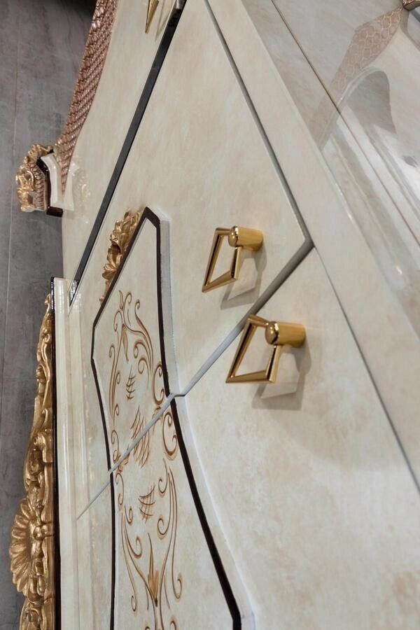 Luxus Esszimmer Set 9 tlg. Esstisch + 6x Stühle + Anrichte mit Spiegel weiß Neu
