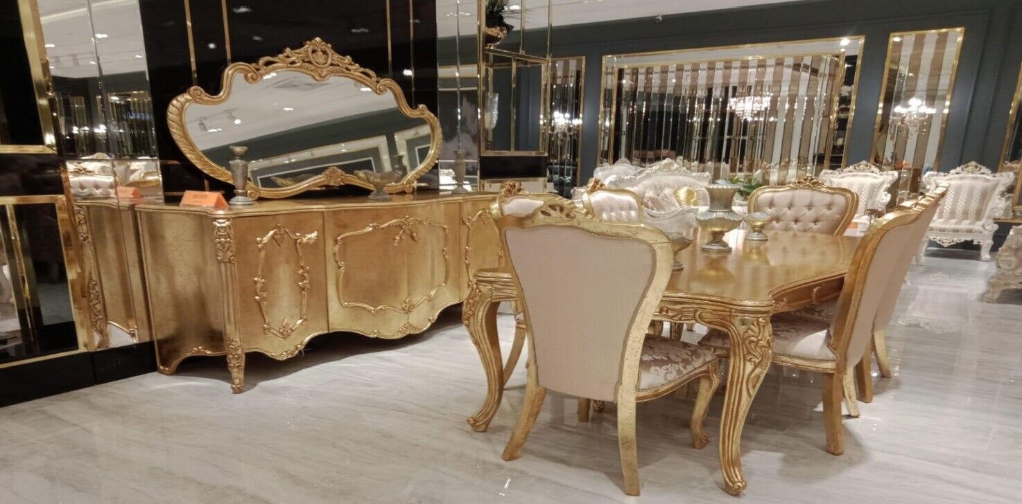Luxus Garnitur Set 9tlg. Esszimmer Esstisch Stuhl Kommode Spiegel Ess Tisch Neu