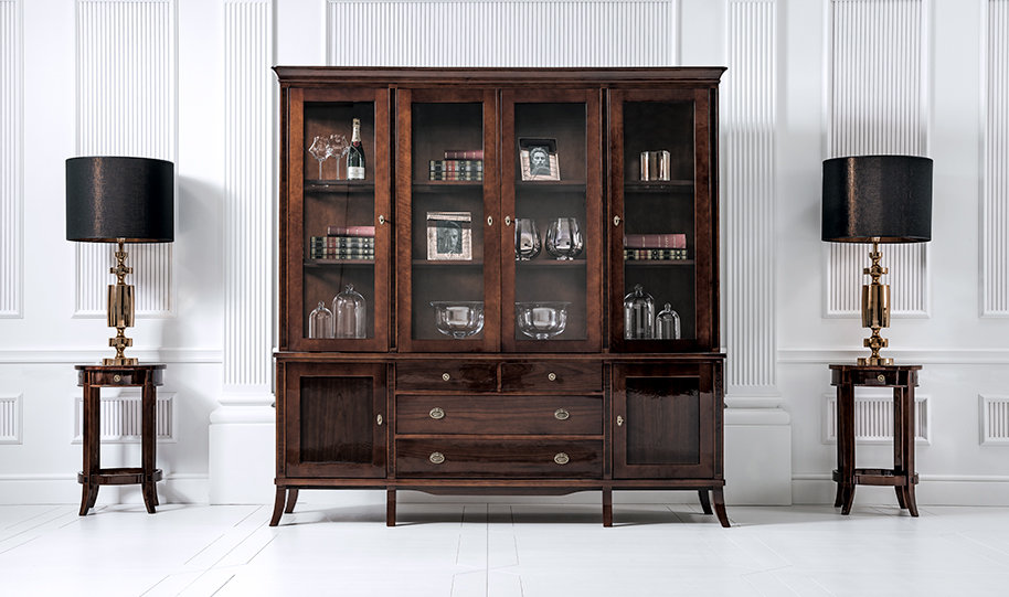 Luxus Wohn Ess Zimmer Set 8 tlg Garnitur Tisch Anrichte Stühle Vitrine
