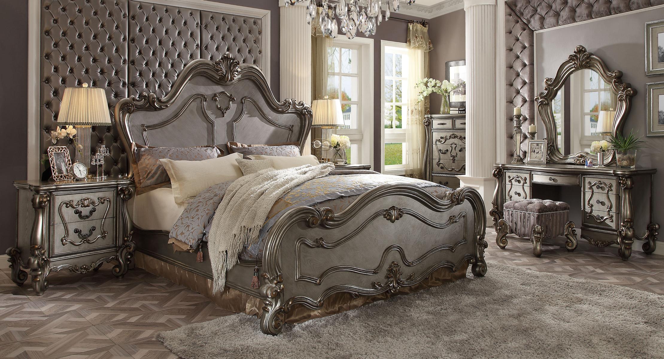 Chesterfield Barock Bett Doppelbett 2x Nachttische Holz Design Betten