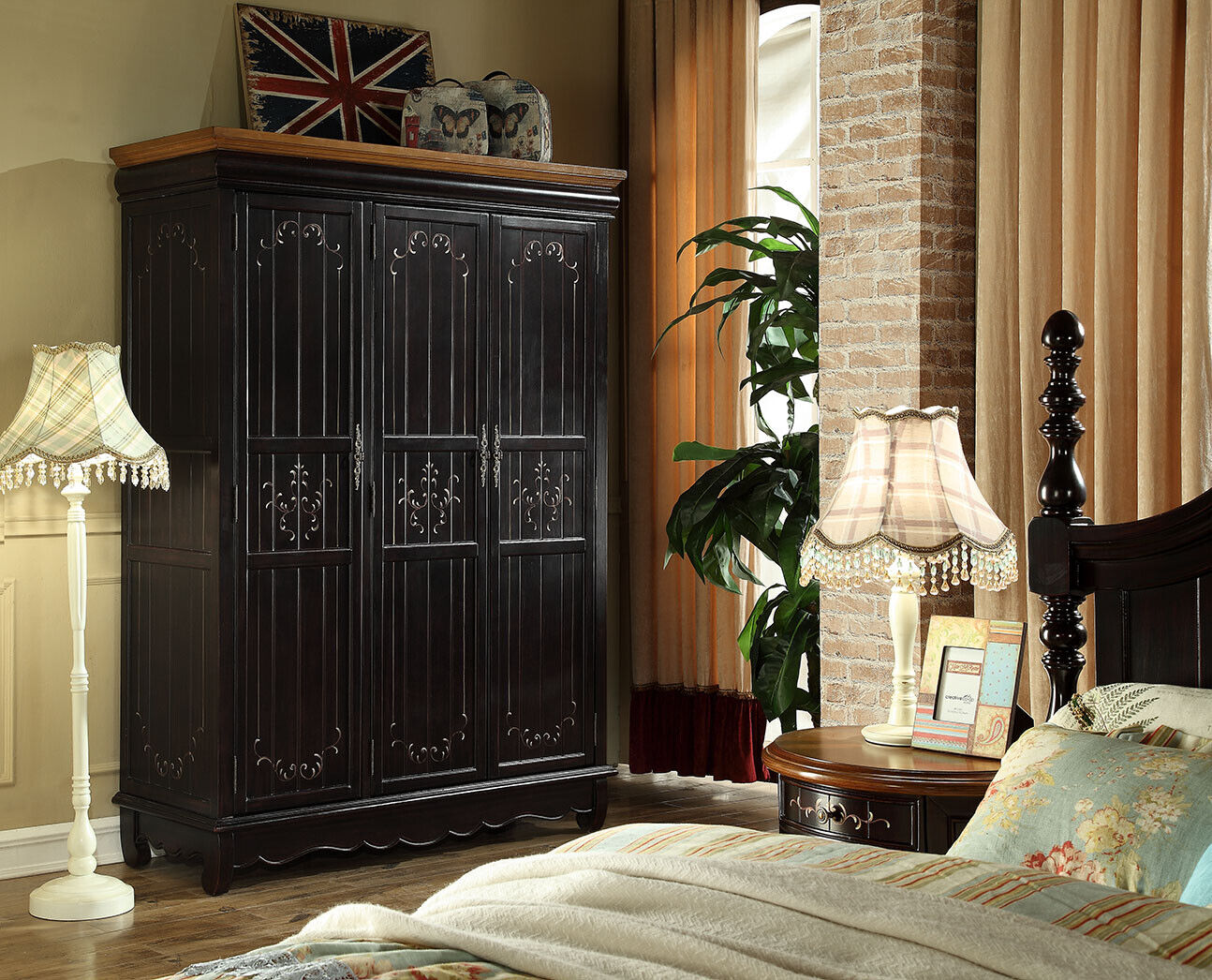 Kleiderschrank Antik Stil Schränke Schwarz Landhaus Möbel Schlafzimmer Schrank