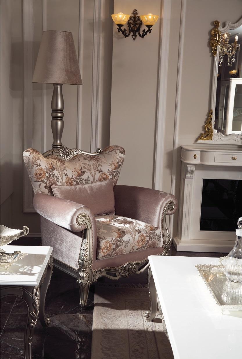 Gepolsterter Sessel Lila mit Blumenmuster Sofa Couch Wohnzimmer Barock