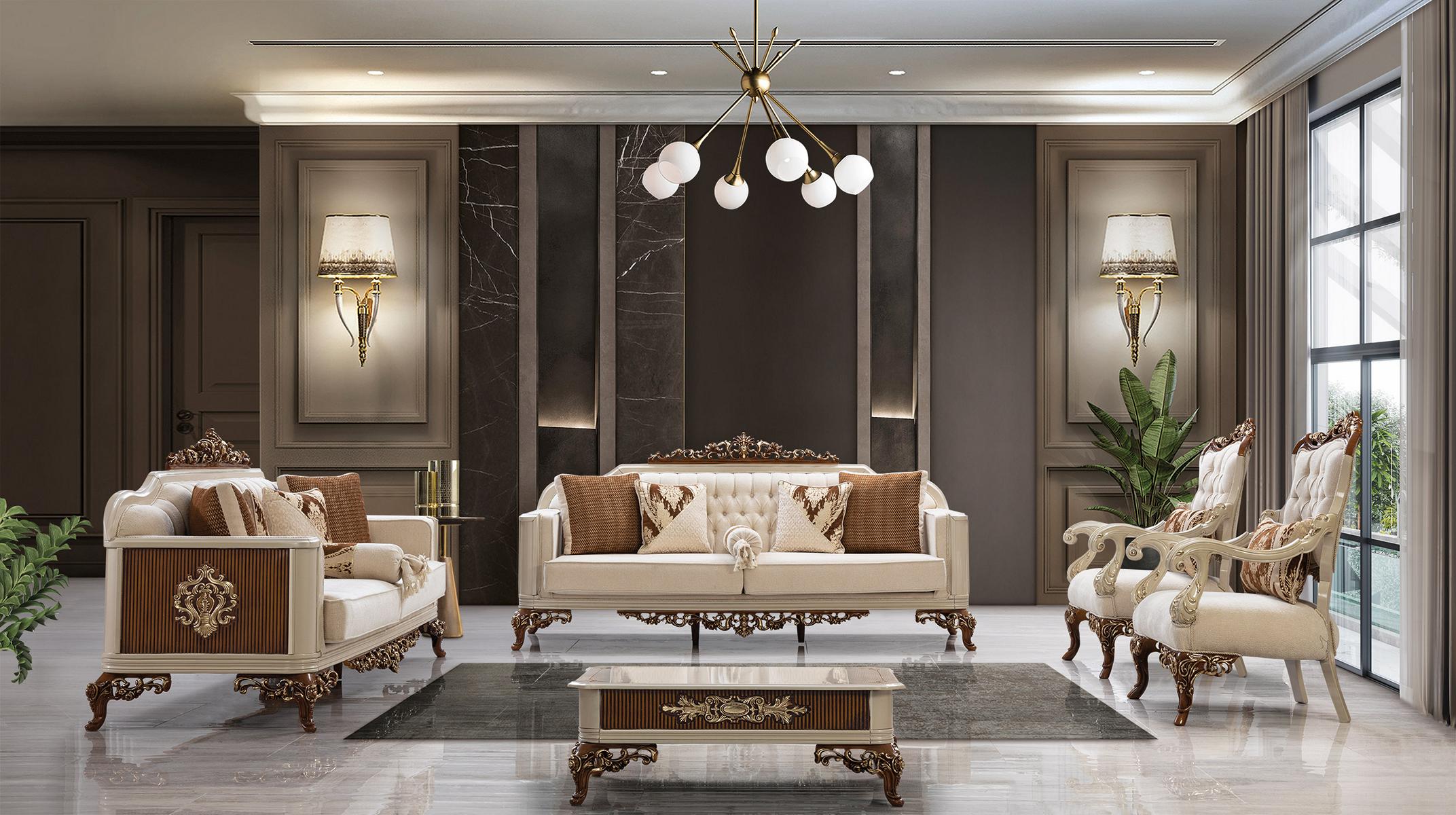 Sofagarnitur 3+1+1+1 Sitzer Couchtisch Luxus Garnitur Sofa Sessel Stoff Barock