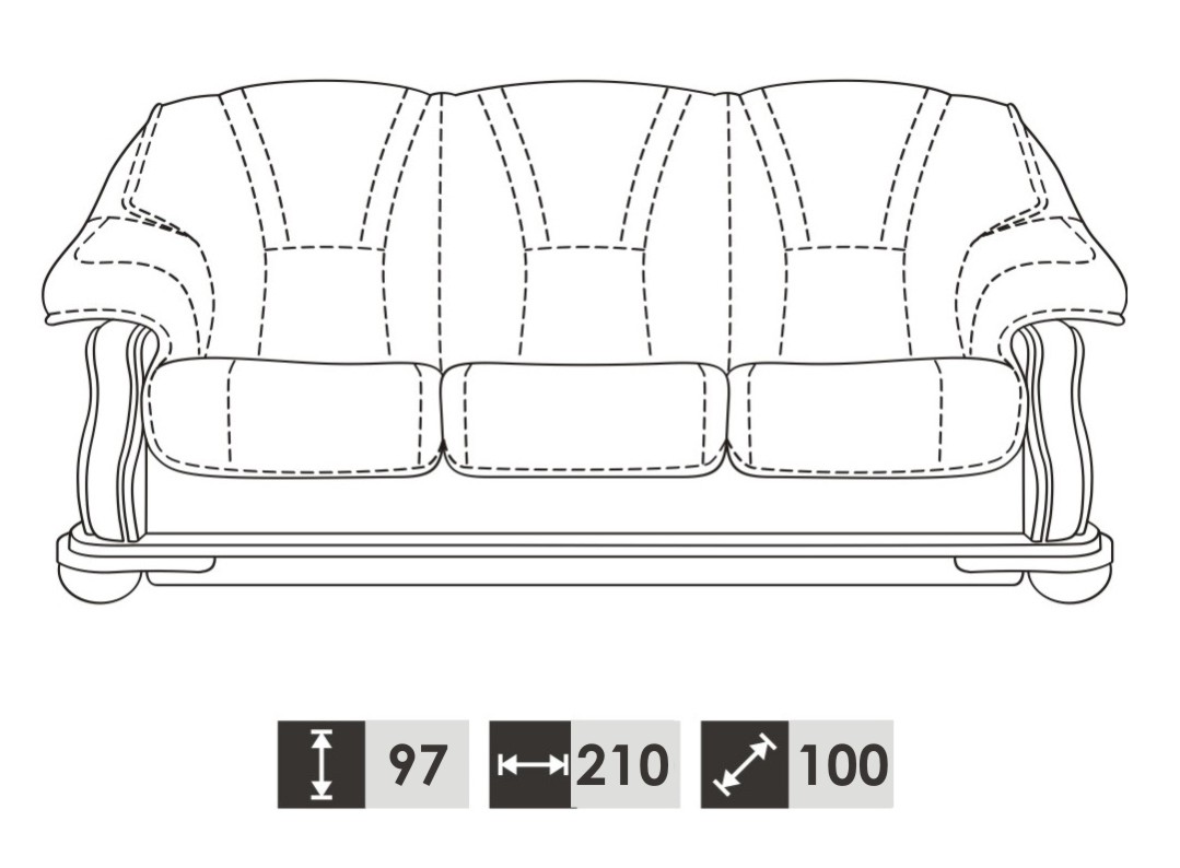 3 Sitzer: ca. 210 x 97 x 100 cm