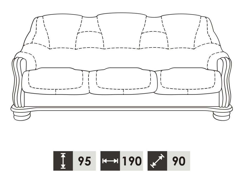 3 Sitzer:      ca. 190 x 95 x 90 cm