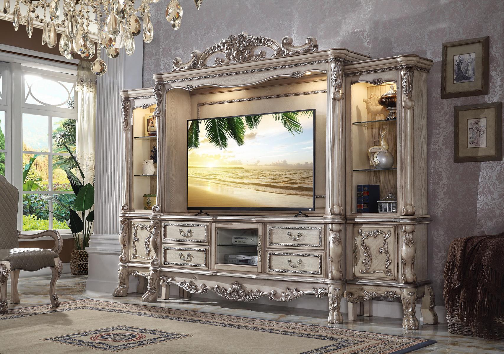Verleihen Sie Ihrem Wohnzimmer mit diesem eleganten Wohnzimmer-Set von XL Möbel einen Hauch von Luxus! Die klassische Wohnwand besticht durch ihre geschwungenen Formen und detailreichen Schnitzereien, die jedem Raum eine edle Atmosphäre verleihen. Hergestellt aus hochwertigem Holz und in edler Farbe, wird dieses Set bestehend aus Vitrine, Schrank und Regal das Highlight Ihres Wohnzimmers sein. Mit den Maßen 285 x 52 x 225 cm passt die Wohnwand perfekt in Ihr Zuhause und bietet ausreichend Stauraum für Ihre persönlichen Gegenstände. Bringen Sie Stil und Eleganz in Ihr Zuhause mit dieser exquisiten Wohnwand von XL Möbel!