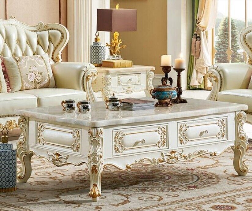 Klassischer Couchtisch 150x90 großer Sofa Beistelltisch Marmor Imitation